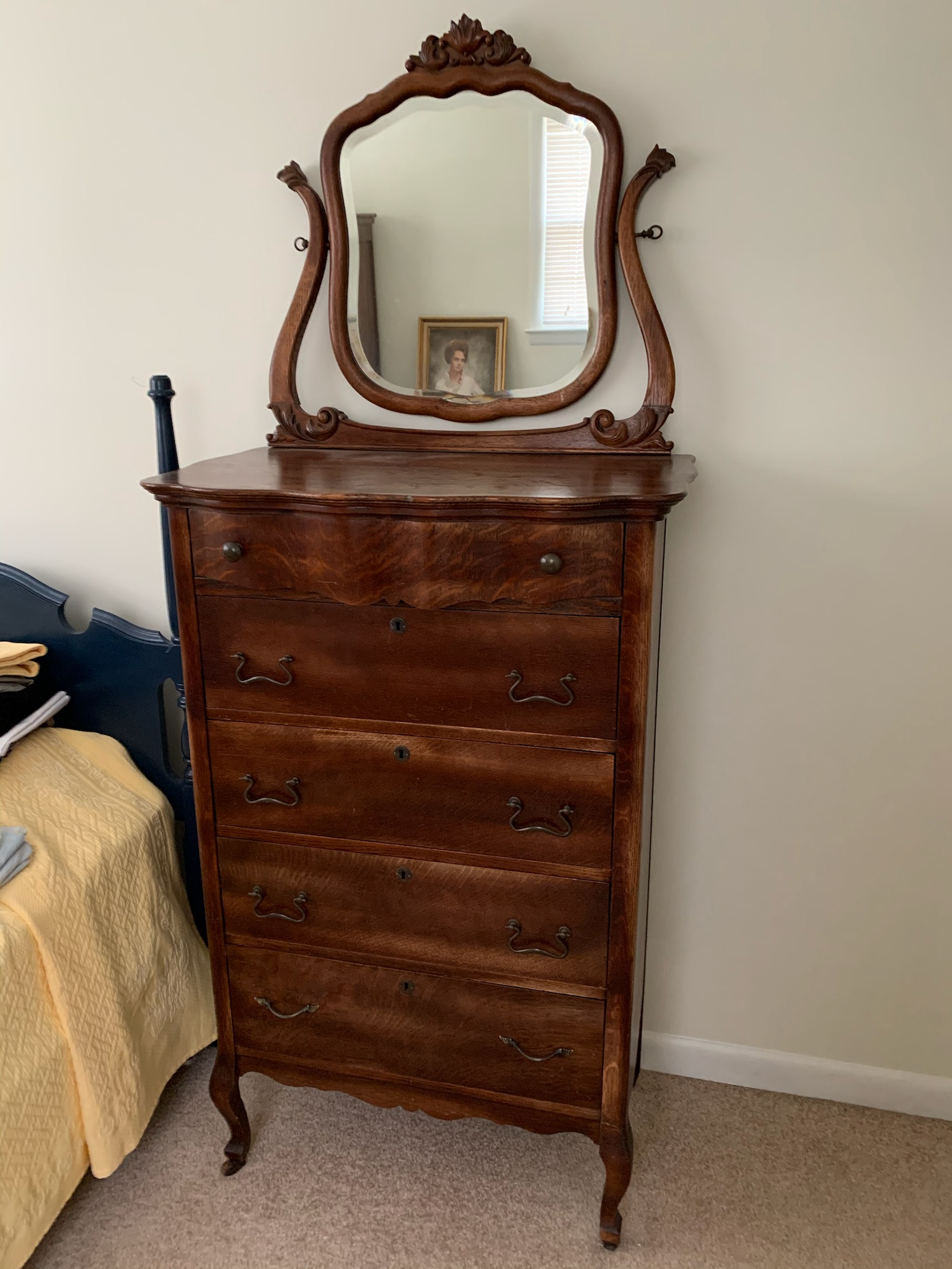 5 drawer chest with mirror Antiques Board